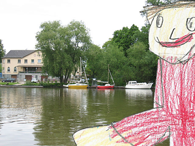 So we walked all around the city. When we stopped to get something to drink, Tobin's uncle learned to say "Dee Ate Co Luh Bit Uh" -- which is German for "Diet Coke, please." Flat Tobin learned to say, "KafFee Mit Milch," which is coffee with milk, but everyone just laughed and said he was mightly small to be drinking coffee and he had some fruit juice. |