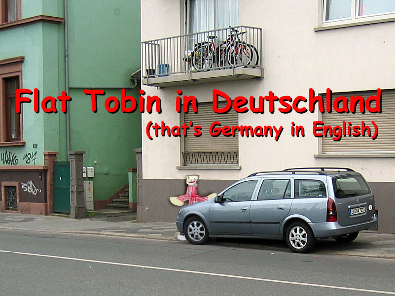 | Flat Tobin went to Germany (in Germany, they call it Deutschland) this week to help Tobin's uncle, Ray, with some work there. It was a very boring trip -- all night on an airplane where Flat Tobin couldn't sleep because the person in the seat behind him kept kicking his seat. But, in the end, going to another country is always an adventure.